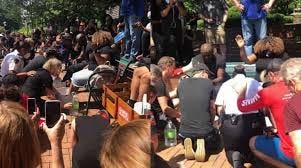 She was there to make another sort of TV commercial. To send the message that (as she remarked the following day at the White House roundtable), Antifa—who in her mind was synonymous with the handful of protestors bellow, including a guy in a chicken costume—were as “sophisticated” and “dangerous” as “ISIS,” “Hezbollah,” and “Hamas.”